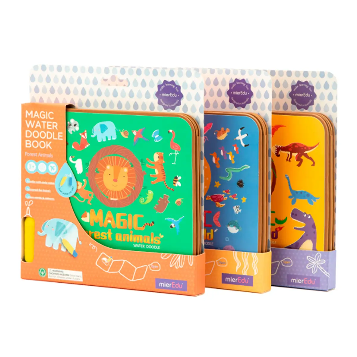mierEdu Vandmalebøger - 3 pak Forrest Animals, Sea World og Dino World