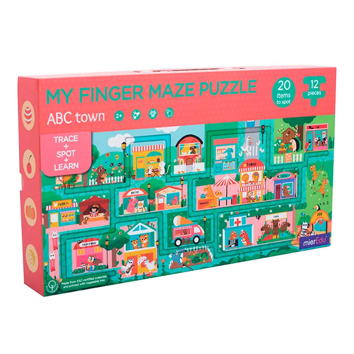 Gør læring sjov med mierEdu Kreativt puslespil - ABC Town, hvor børn kan følge labyrinten med fingrene og lære bogstaver, mens de finder ting og figurer, der starter med de forskellige bogstaver. Et farverigt og engagerende puslespil, der fremmer motorik og kognitiv udvikling hos børn gennem leg.